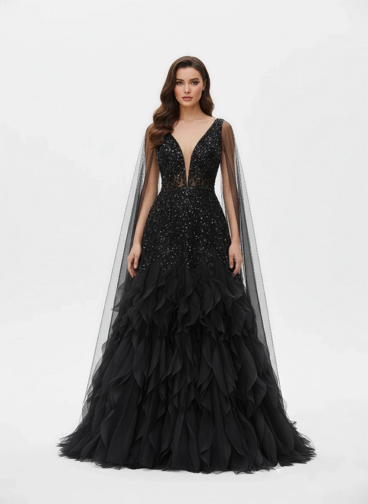 - 3D Floral Appliqué Sleeves: Handcrafted floral details add couture-level charm and texture.